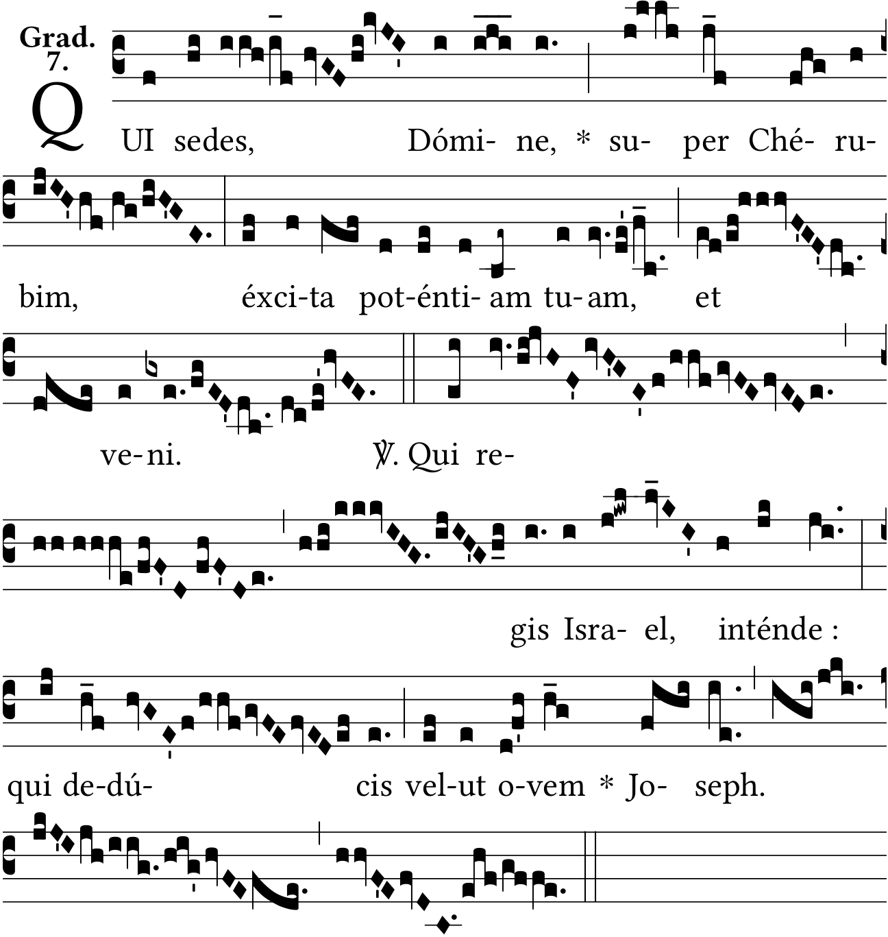 - Aug 19, 2022: medium spaces, zero-width spaces in 'sedes' and 'veni', shortening ledger line, removing inactive spaces, adding 1990 GM as source (lvdovicvs) ?