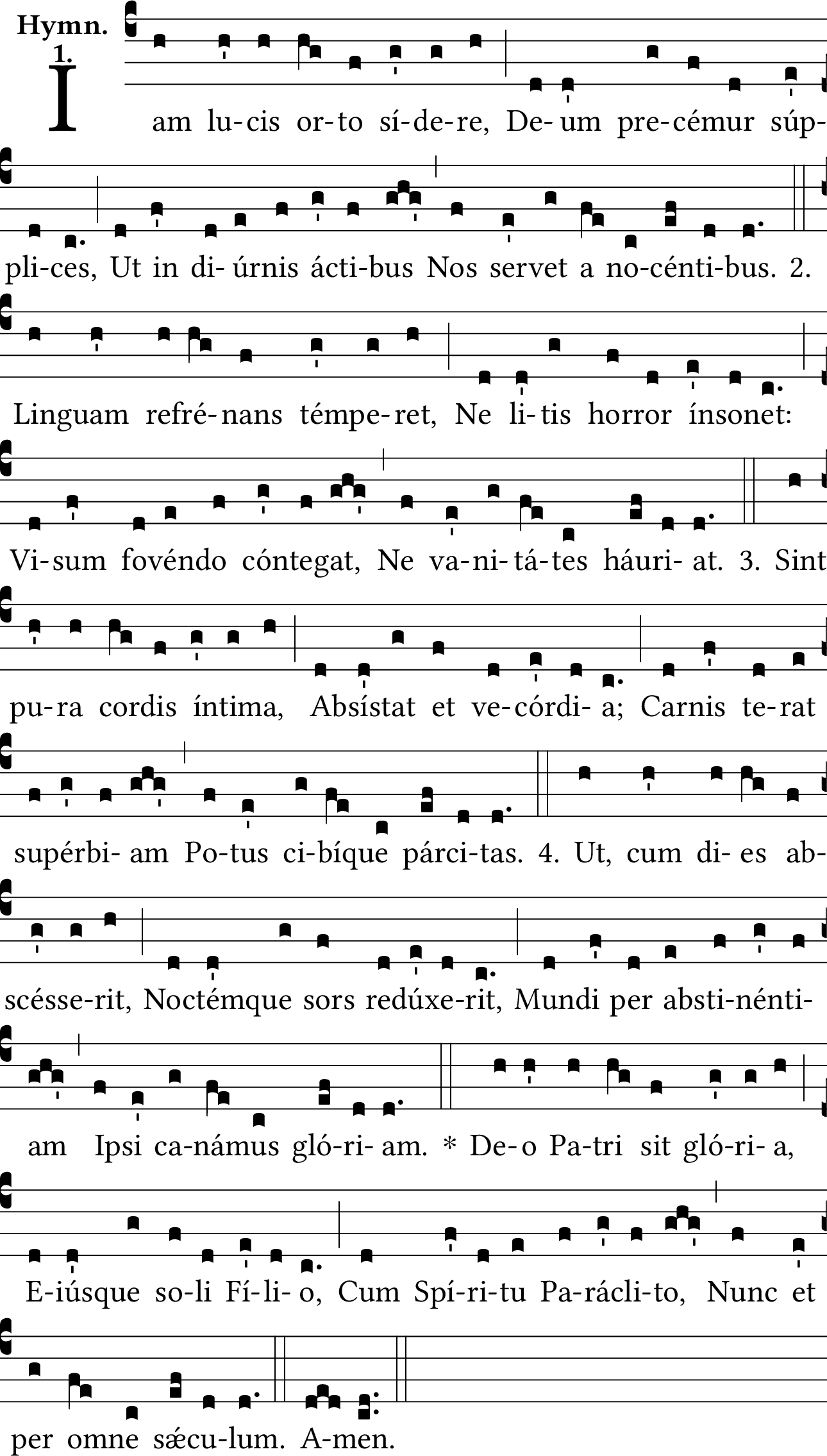 Hymnus Jam lucis, cantatur et concluditur ut infra notatur ad Tertiam (alter tonus)