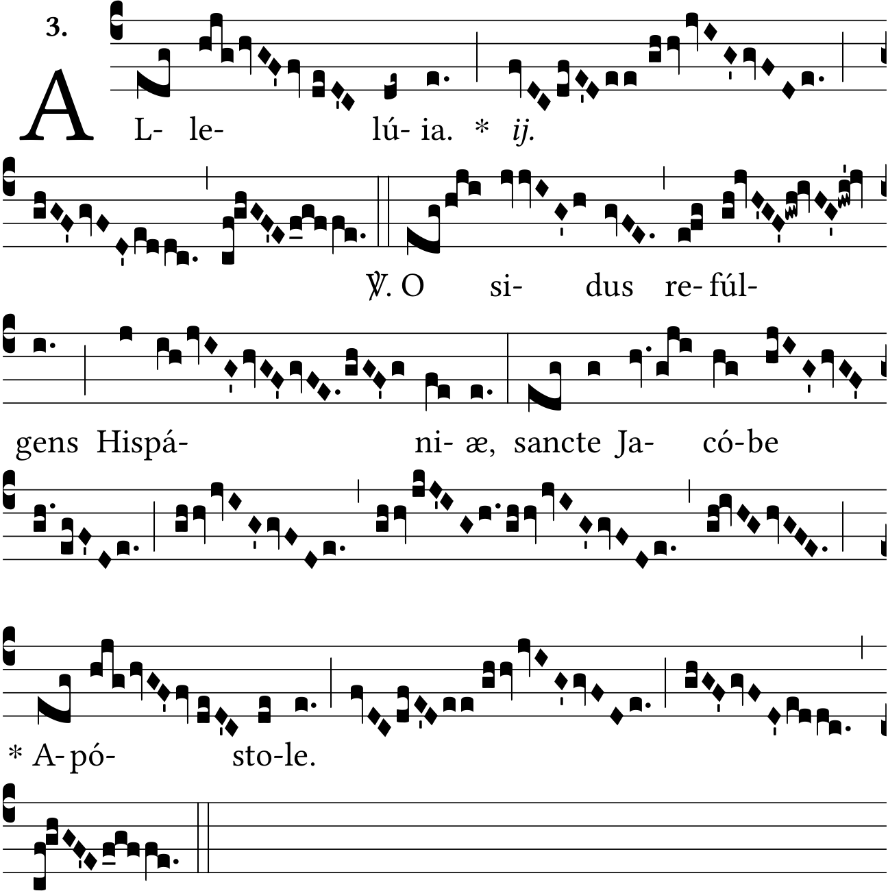 - Jul 15, 2022: Removed accents of two syllable words, added dot after "Allelúia(.)", added "ij.", fixed typo "Apóstol-æ." to "-e.", fixed some spacing between neumes, added the rest of the melisma of "Jacó-be" (Verbum Gloriae) ?