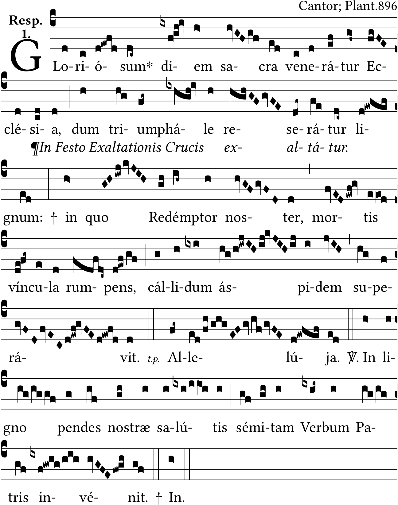 - Feb 09, 2022: Added option for Invention/Exaltation as in source; added *; fixed virga at mortis; added alleluia; fixed inclination at lu in salutis. (rleduc) ?