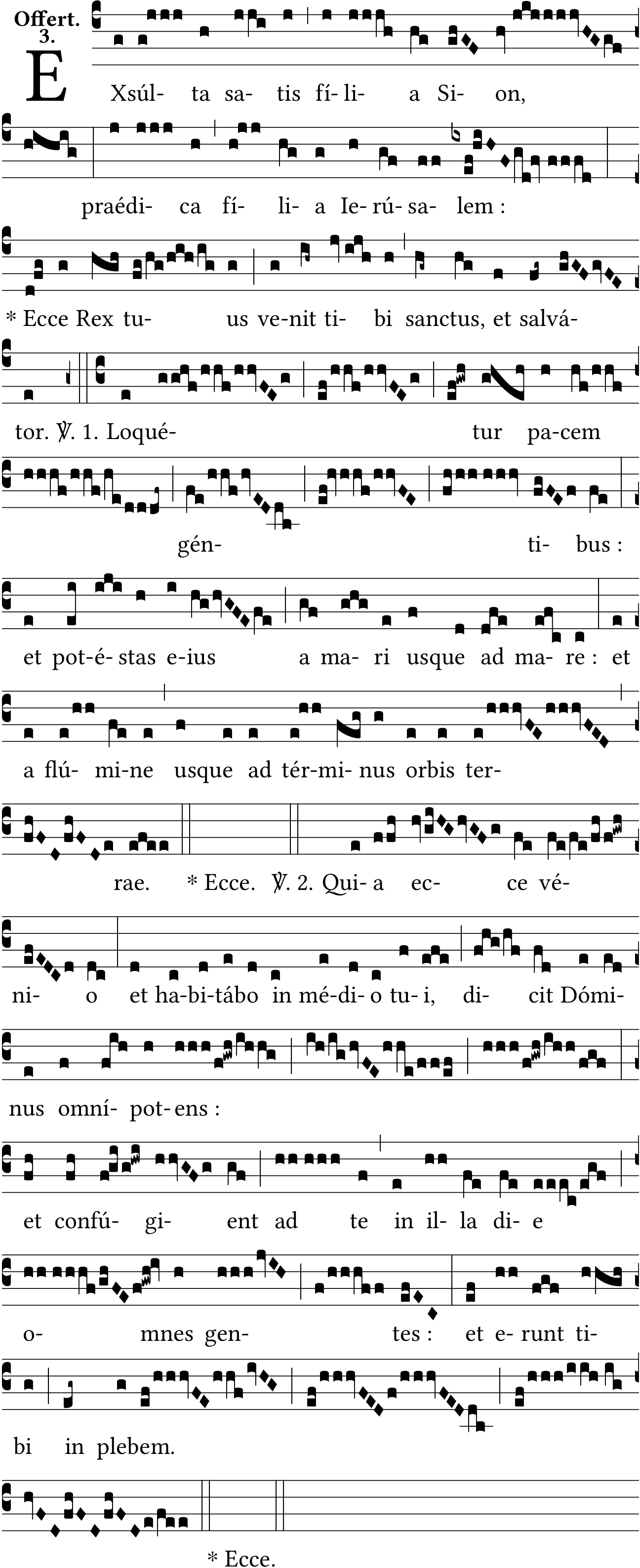 - Sep 30, 2022: EXsúlta, Ierúsalem, pot-éstas, o-mnípot-ens, o-mnes, space :, unneeded slash spaces, removing star from incipit, changing semicolon into colon, star after full bar, joining quilismas, joining virgas, adding/changing notes on many words (Jacques Perriere) ?