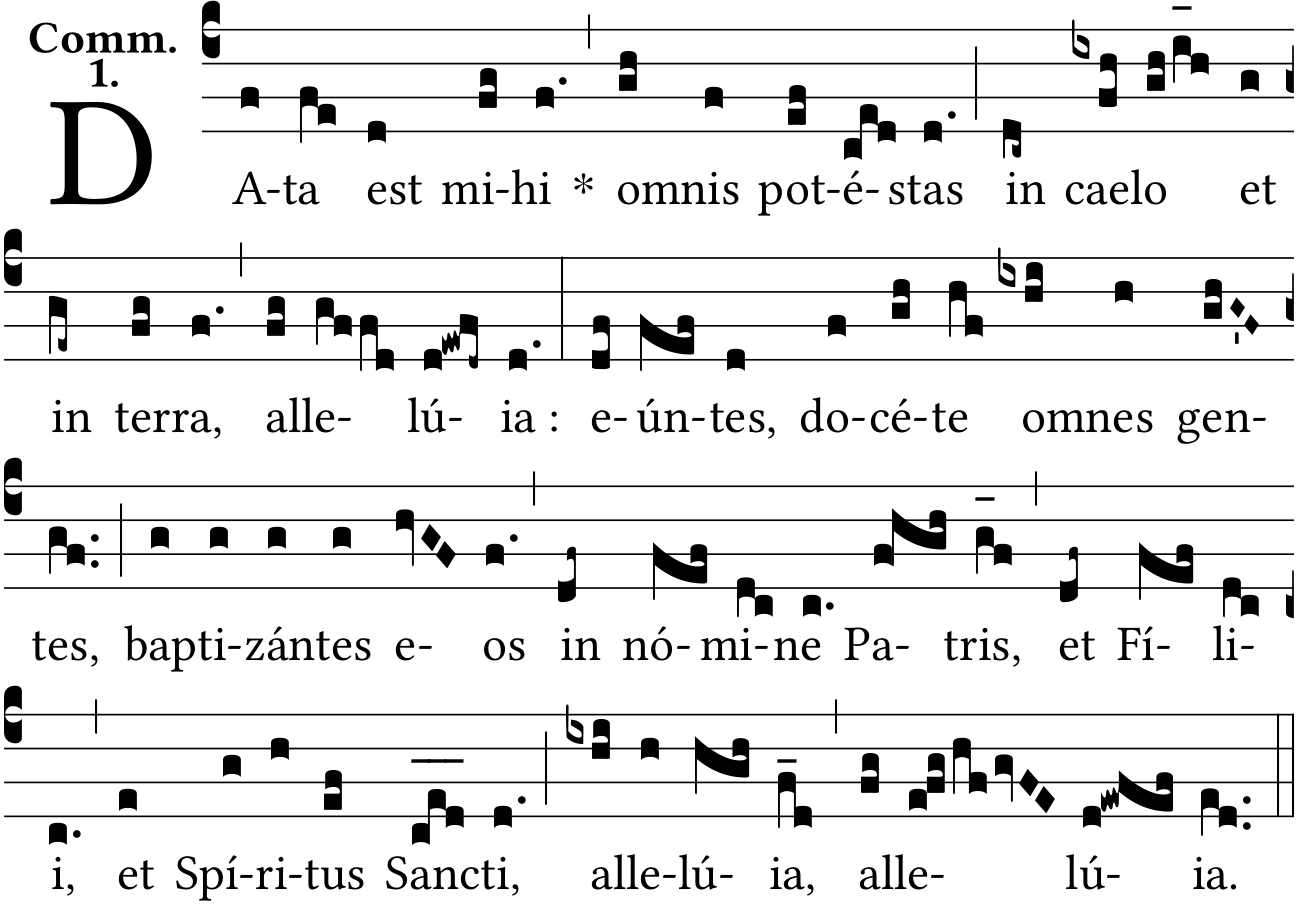 - Aug 10, 2021: o-mnis, pot-é-stas, o-mnes, ba-ptizántes, Allelú{ia}, space :, raising episemas, ancus on 'gentes', Liber Usualis page 803 (Jacques Perriere) ?