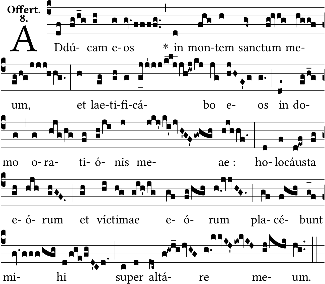 - Aug 12, 2021: san-ctum, ví-ctimae, space :, raising and lowering episemas, one ictus up, one punctum mora down, adding a punctum mora on 'mihi' (Jacques Perriere) ?