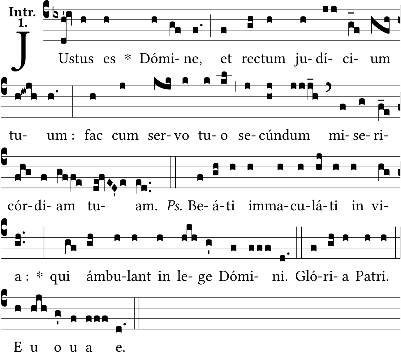 - Aug 12, 2021: JU-stus, re-ctum, space :, dot after Glória Patri and Euouae, raising one episema, grouping Euouae (Jacques Perriere) ?