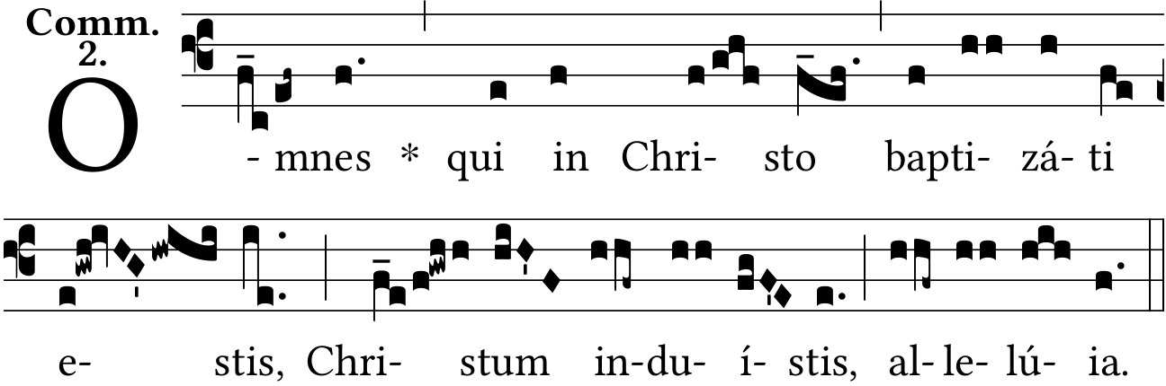 - Aug 13, 2021: O-mnes, Chri-sto, ba-ptizáti, e-stis, Chri-stum, Allelú{ia}, joining quilisma on 'estis' (Jacques Perriere) ?
