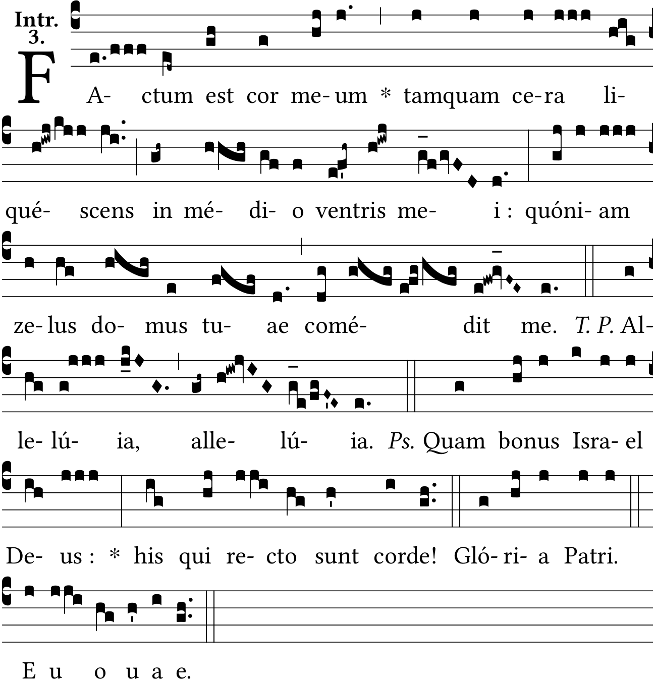 - Aug 16, 2021: Allelú{ia}, space :, dot after Glória Patri and Euouae, grouping Euouae, raising episemas, ancus on 'comédit' and alleluia (Jacques Perriere) ?