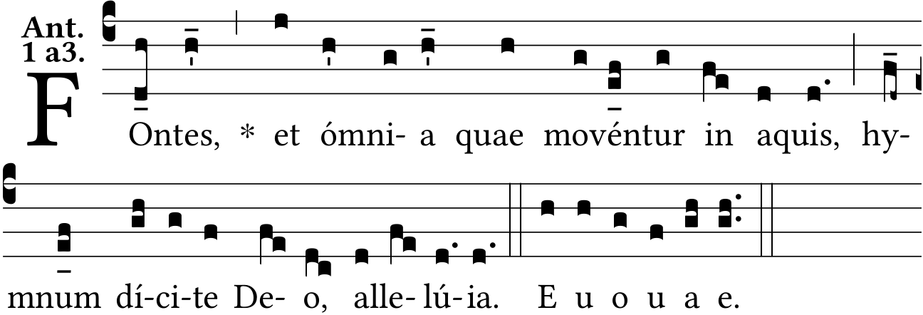 - May 18, 2023: adding Euouae, psalm tone 1a3, hy-mnum, Allelú{ia} (Jacques Perriere) ?