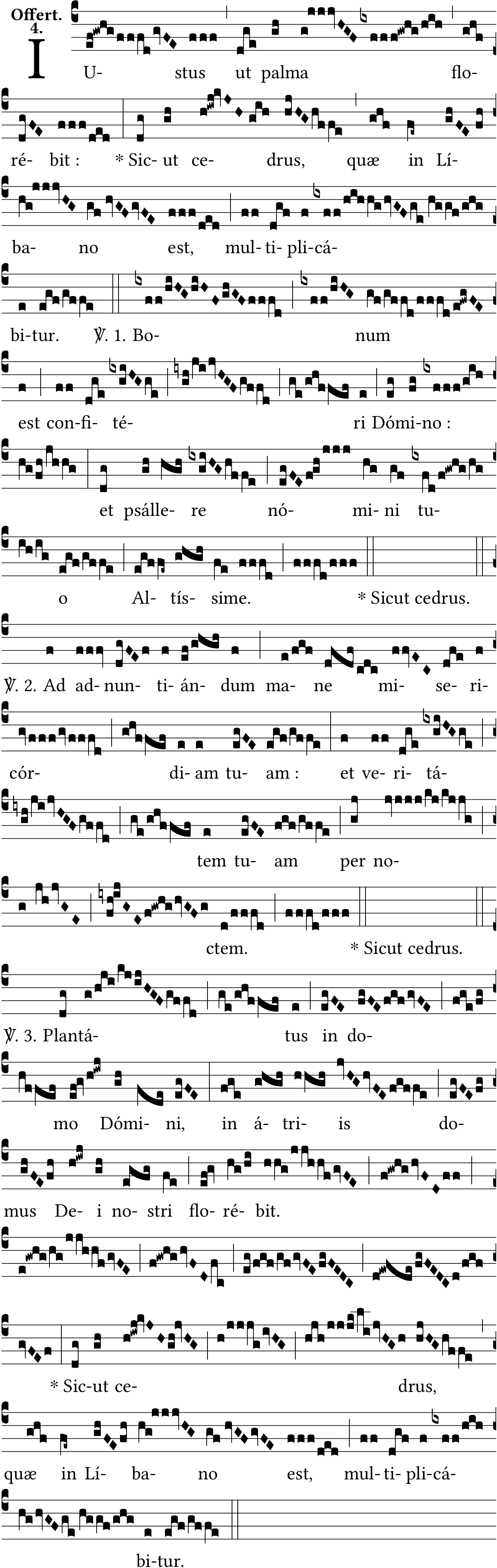 - Oct 14, 2022: Sic-ut, no-stri, 'nómini tuo', Altíssime, space after key, dot after V, star after bars, unneeded slash spaces, medium spaces, large space on 'noctem', joining quilismas, joining virgas, changing notes on 'Líbano', adding one note on 'Dómino', adding two half bars, changing double bar into full bar, Version Offertoriale 1935 (Jacques Perriere) ?