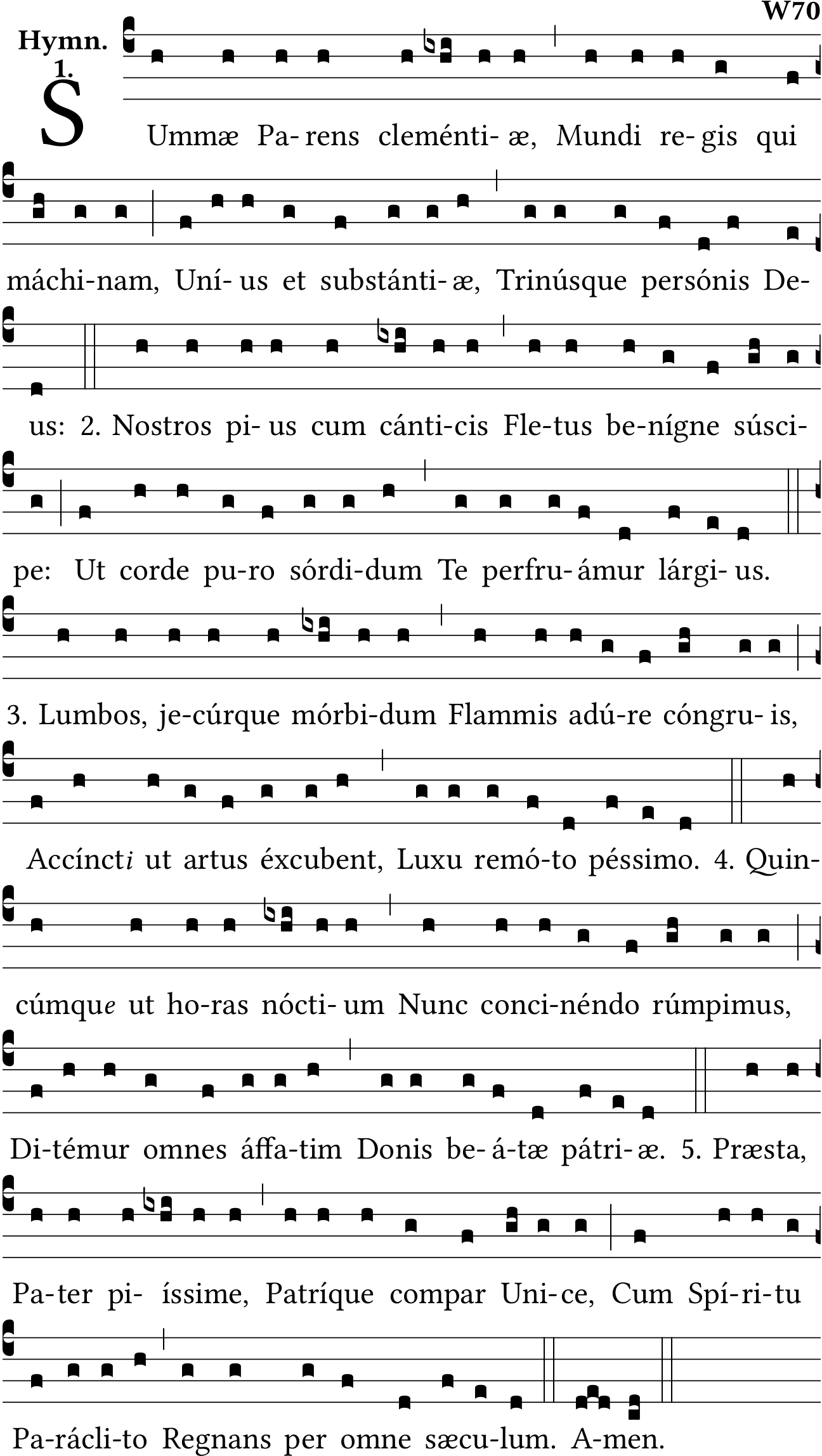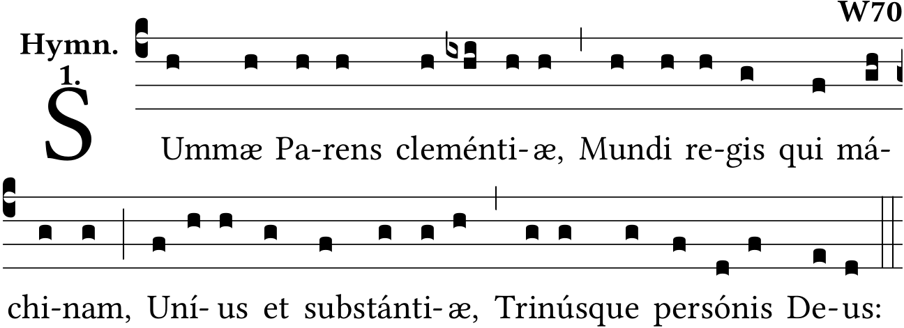 - Mar 07, 2022: commentary format; missing comma at clementiae (checked breviary - possibly ommited to trim line length), bad accent at Unius, missing period patriae v.4. (rleduc) ?