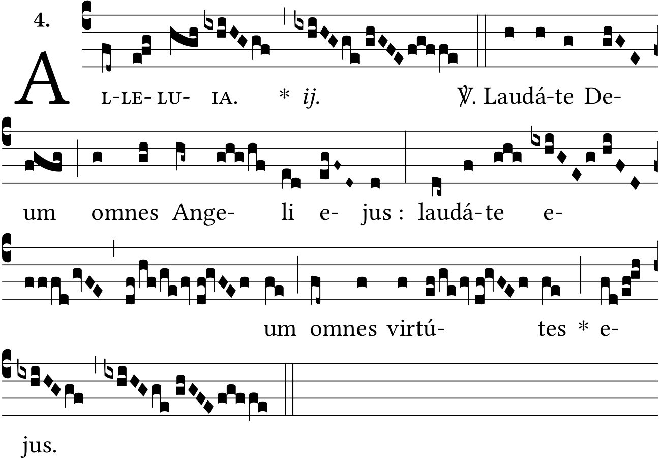- Oct 25, 2022: adding half bar after 'virtútes', liquescence on 'ejus', dot after 'allelúia', V. after double bar, medium space in 'ejus', small caps, space :, centering "ia" and "ij", unneeded zero-width space, title as in index (lvdovicvs) ?