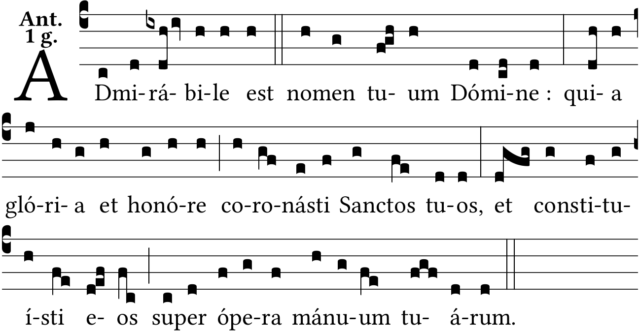 - Jul 09, 2023: Replaced intonation asterisk with double bar to reflect score; Added half bars after "honore" and "eos" (ExsurgatDeus) ?