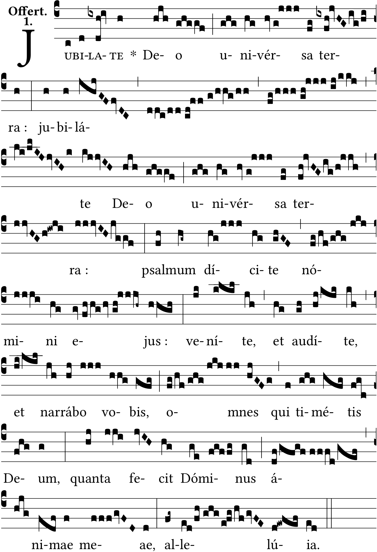 - Oct 25, 2022: u-nivérsa, raising notes on 'jubiláte', shortening ledger line, lengthening ledger lines, small caps, spaces :, unneeded slash spaces, unneeded zero-width space, space between text and top notes (TeX), stretch around bars (TeX) (lvdovicvs) ?