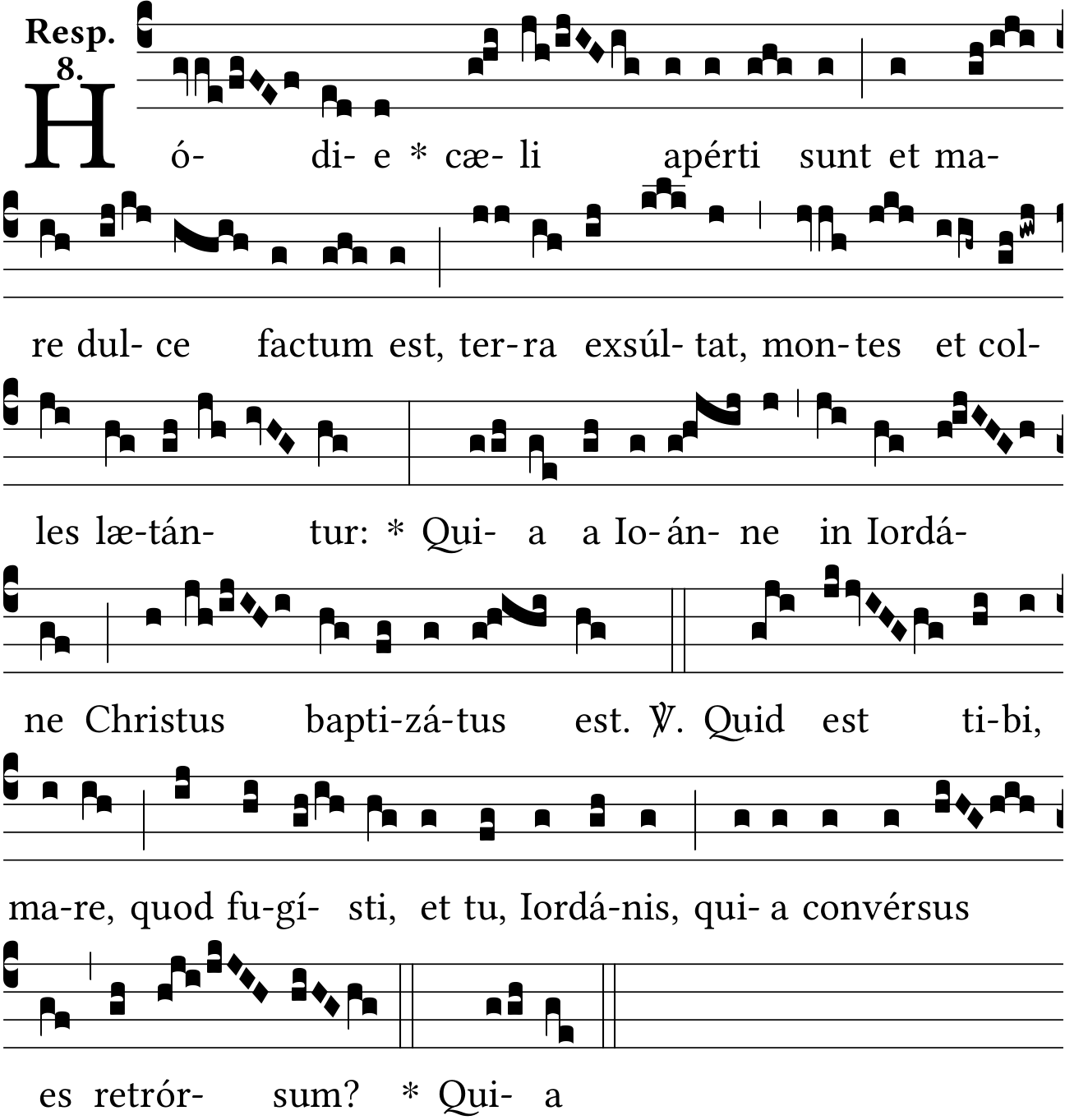 - Jan 07, 2025: Per source at http://www.e-codices.unifr.ch/en/fcc/0002/42v, added three missing notes from second syllable of "laetantur" (ti-la-sol), and corrected one note in second syllable of "mare" in the ℣ (was sol, should be ti). (merwin) ?