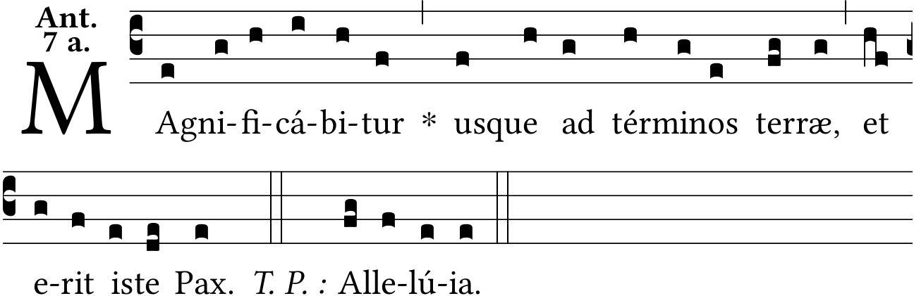 Melody taken from the Antiphonale Monasticum, 1934 edition, page 1093, adapted per indications on the Ordo Cantus Officii, 2015, for use in the Solemnity of the Annunciation.
