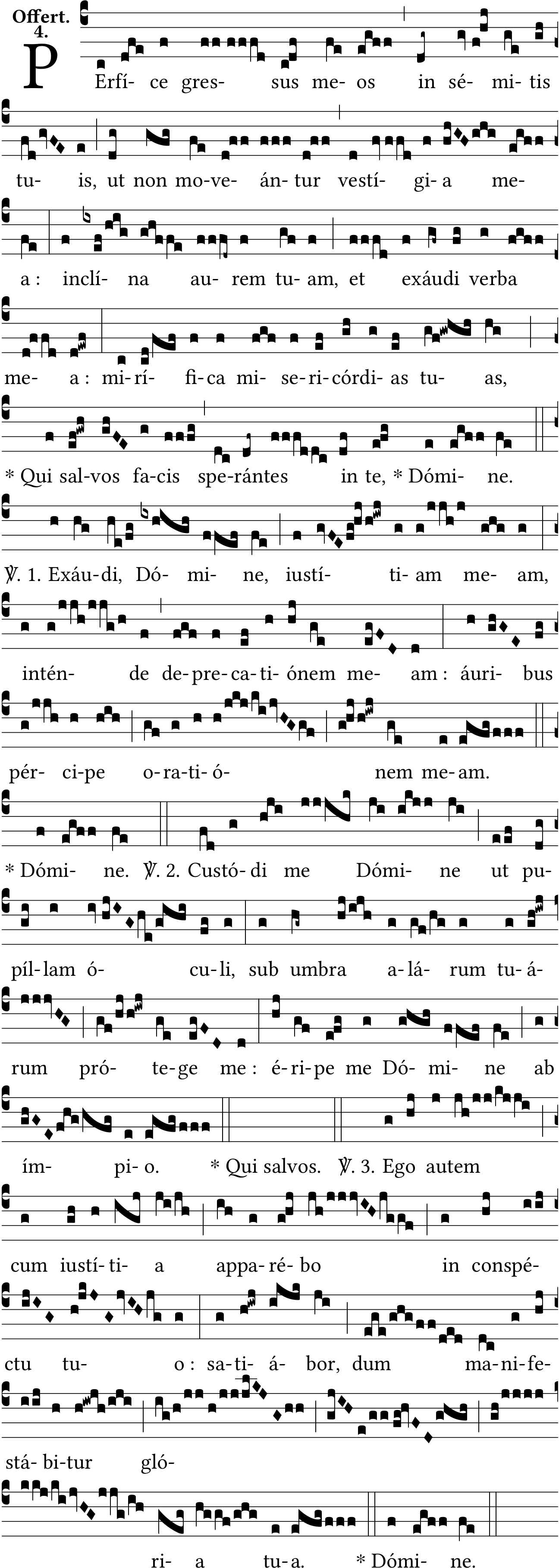 - Jul 11, 2022: PErfíce, space :, space after key, dot after 'tua', changing note from E to F on 'Dómine' (Jacques Perriere) ?