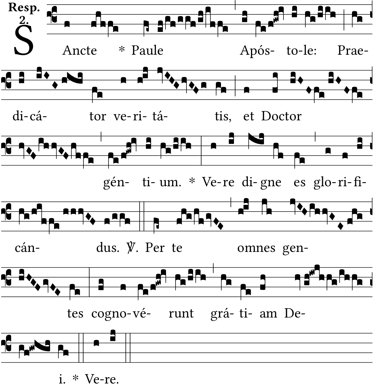 Melody taken from the Graduale Romanum, 1961 edition, p. 420, adapted to the text of the second responsory on the Office of Readings for the Solemnity of Sts Peter and Paul.