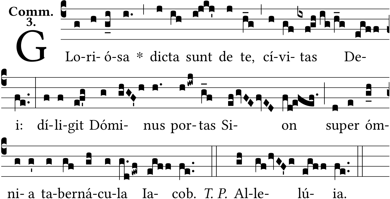- Aug 16, 2025: Change: "Dicta sunt de te," - last syllabe "te"; was (h_g); adjusted to (h_f), according to original scan (LB insert: DIE 26 AUGUSTI, BEATÆ MARIÆ VIRGINIS CLAROMONTANÆ CZĘSTOCHOVIENSIS.; Printed in Belgium; Copyright 1958 by Desclee & Co., Tournai (Belg.),; Page 10). (ioannessi) ?