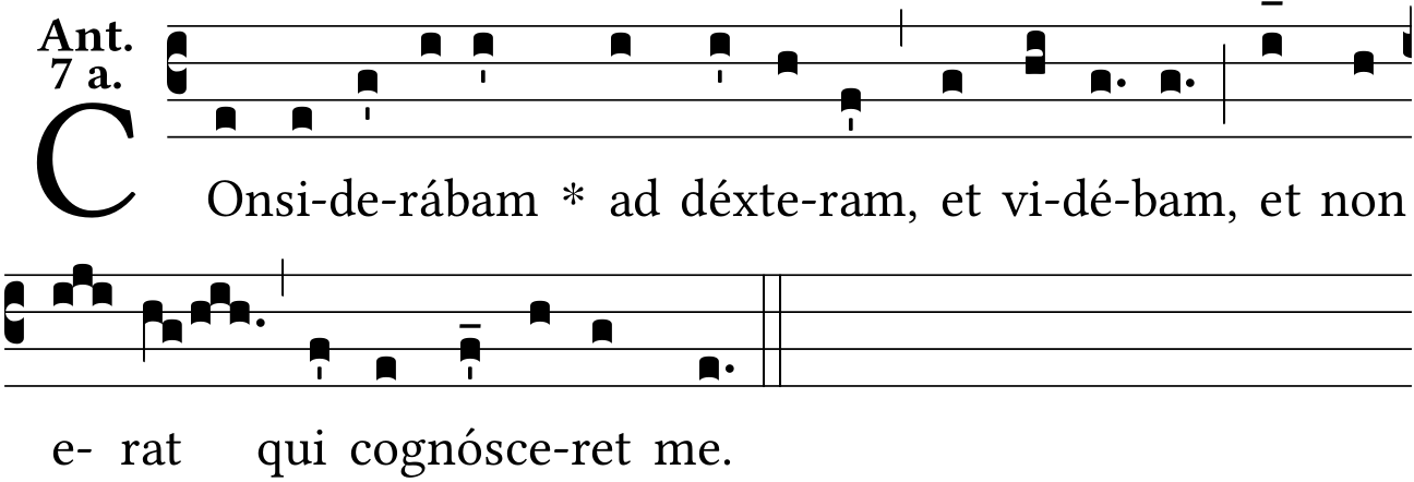 - Dec 16, 2021: psalm tone 7a, COnsiderábam, raising one episema, Liber Antiphonarius page 437 (Jacques Perriere) ?