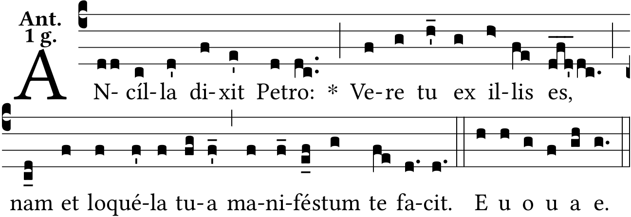 - Mar 30, 2025: diminished liquescent on 'illis'; corrected double dots on 'Petro'; expanded episema on torculus of 'es' (Steven van Roode) ?