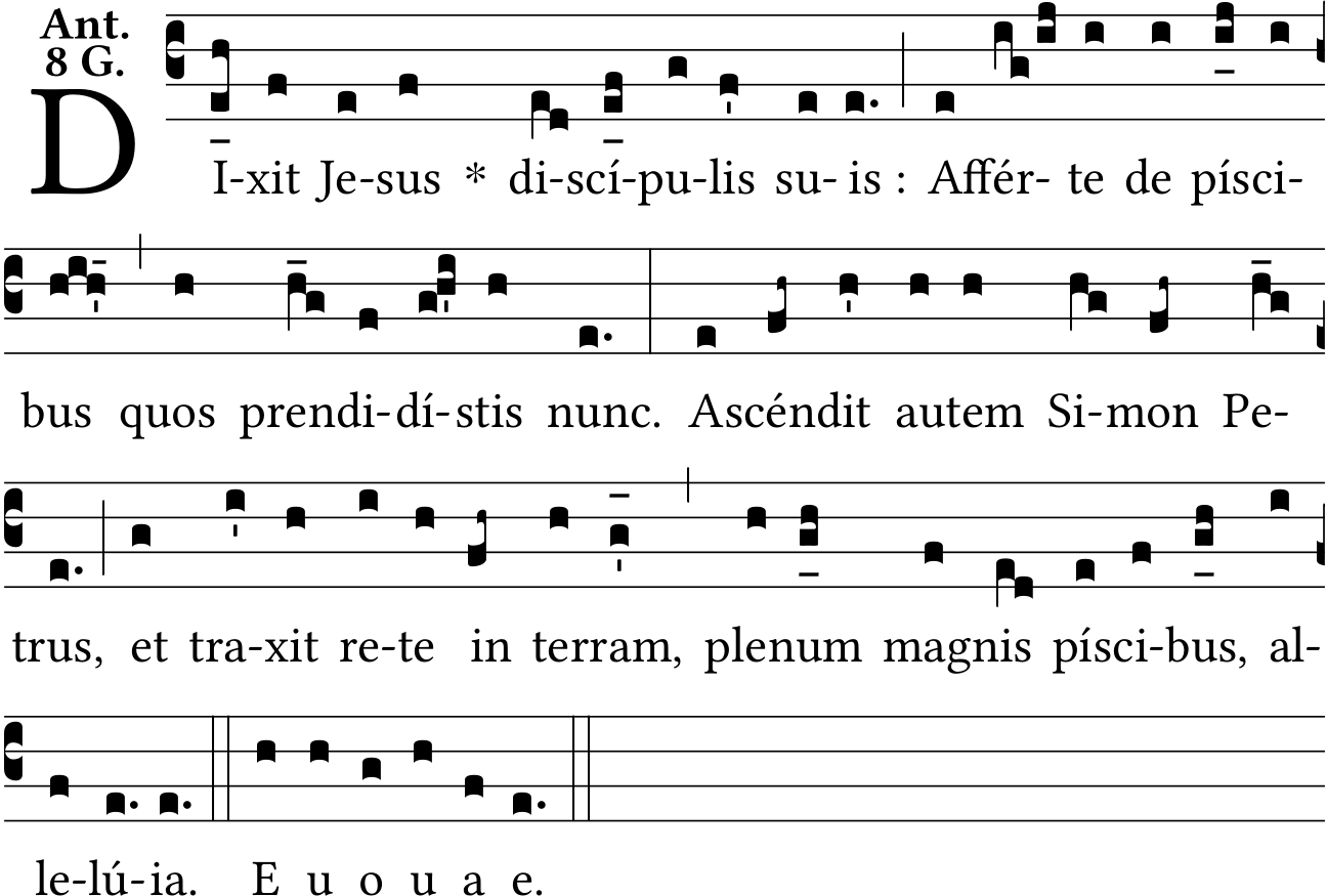 - Mar 11, 2022: Adjusted podatus of piscibus to Do-Re-Do instead of Re-Mi-Re (DomMocquereau) ?