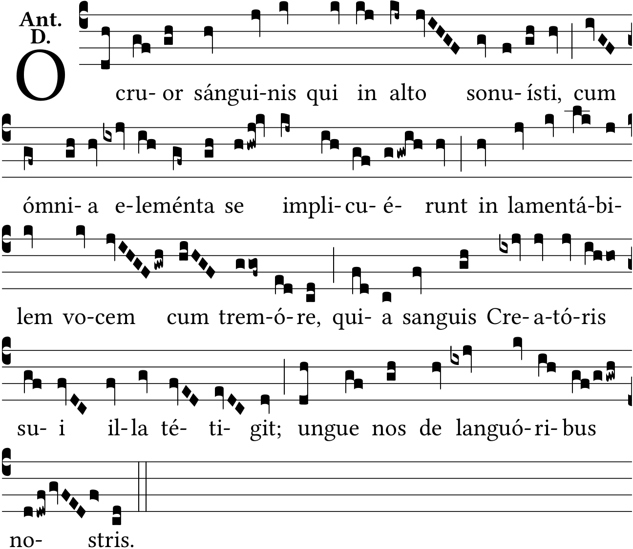 To complete the remainder of the antiphon (ungue nos de languoribus nostris), I have used the first incise of the antiphon "O beatissime Ruperte" (R. 471r).
