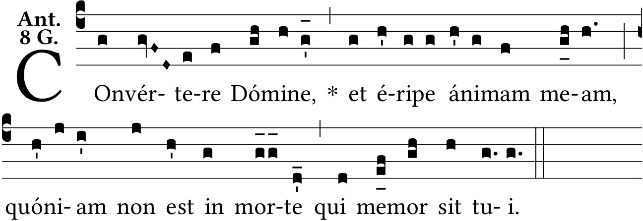 - Apr 22, 2022: psalm tone 8G, ancus on 'COnvertere', separating episemas on 'morte', raising and lowering episemas, Liber Antiphonarius page [156] (Jacques Perriere) ?