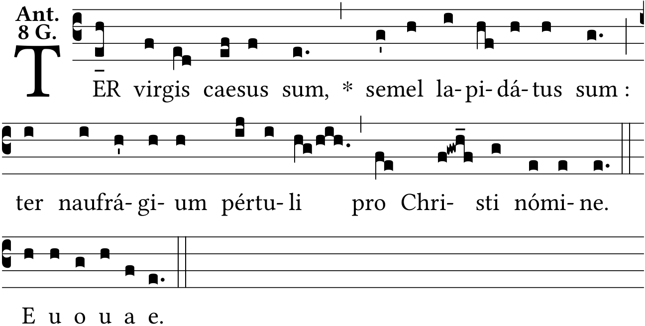 - May 02, 2022: psalm tone 8G, space :, removing unnecessary accent, star after quarter bar, lowering one episema, Liber Antiphonarius pages 610 and 757 (Jacques Perriere) ?