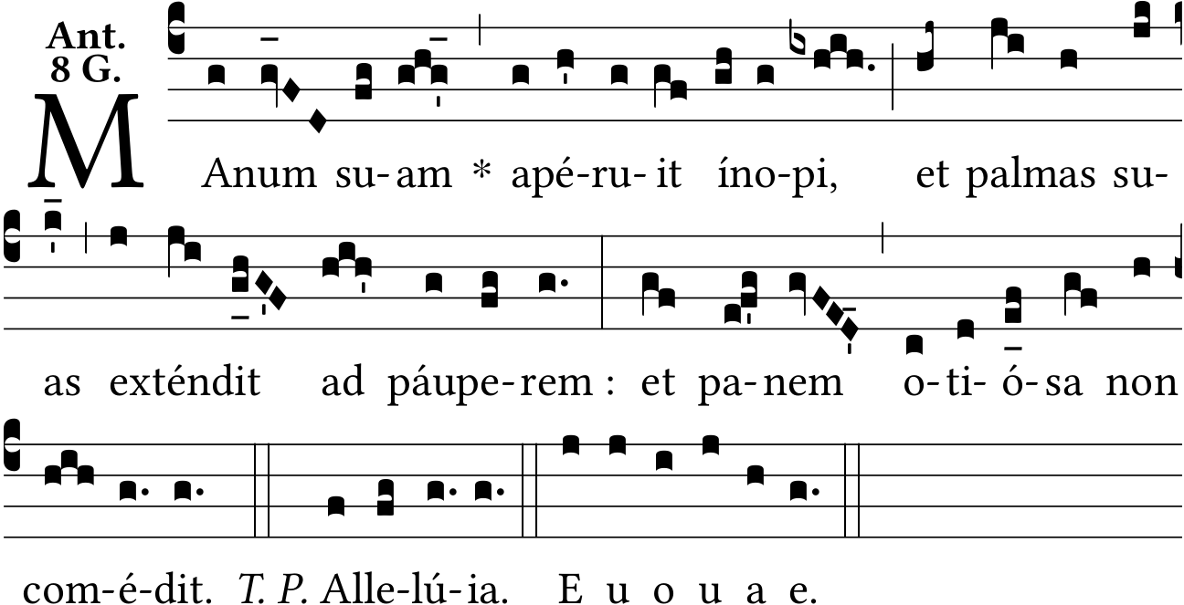 - May 03, 2022: psalm tone 8G, ín-opi, space :, Allelú{ia}, T. P. after double bar, one episema up, one episema type 4, raising and lowering episemas, Liber Antiphonarius pages 577.22 and [103] (Jacques Perriere) ?