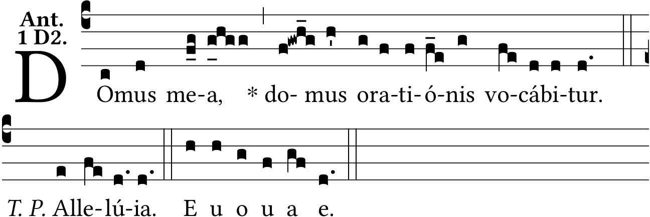- May 15, 2022: psalm tone 2D, Allelú{ia}, lowering one episema, star after quarter bar, T. P. after double bar, Liber Antiphonarius page [107] (Jacques Perriere) ?
