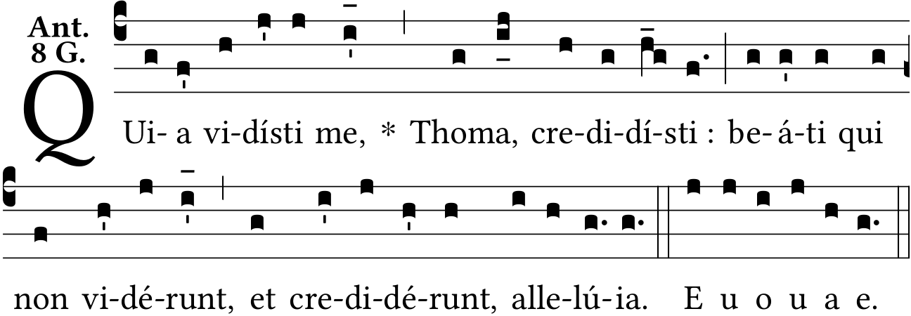 - May 15, 2022: psalm tone 8G, space :, Allelú{ia}, raising and lowering episemas, star after quarter bar, Liber Antiphonarius page 595 (Jacques Perriere) ?