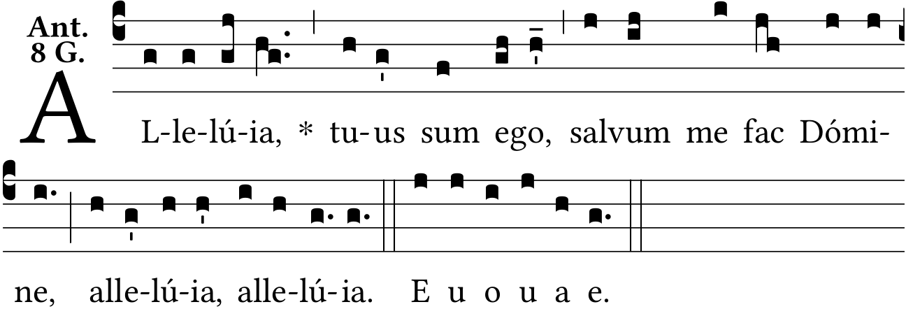 - May 20, 2022: psalm tone 8G, Allelú{ia}, Liber Usualis page 241, Liber Antiphonarius pages 33 and 35 (Jacques Perriere) ?