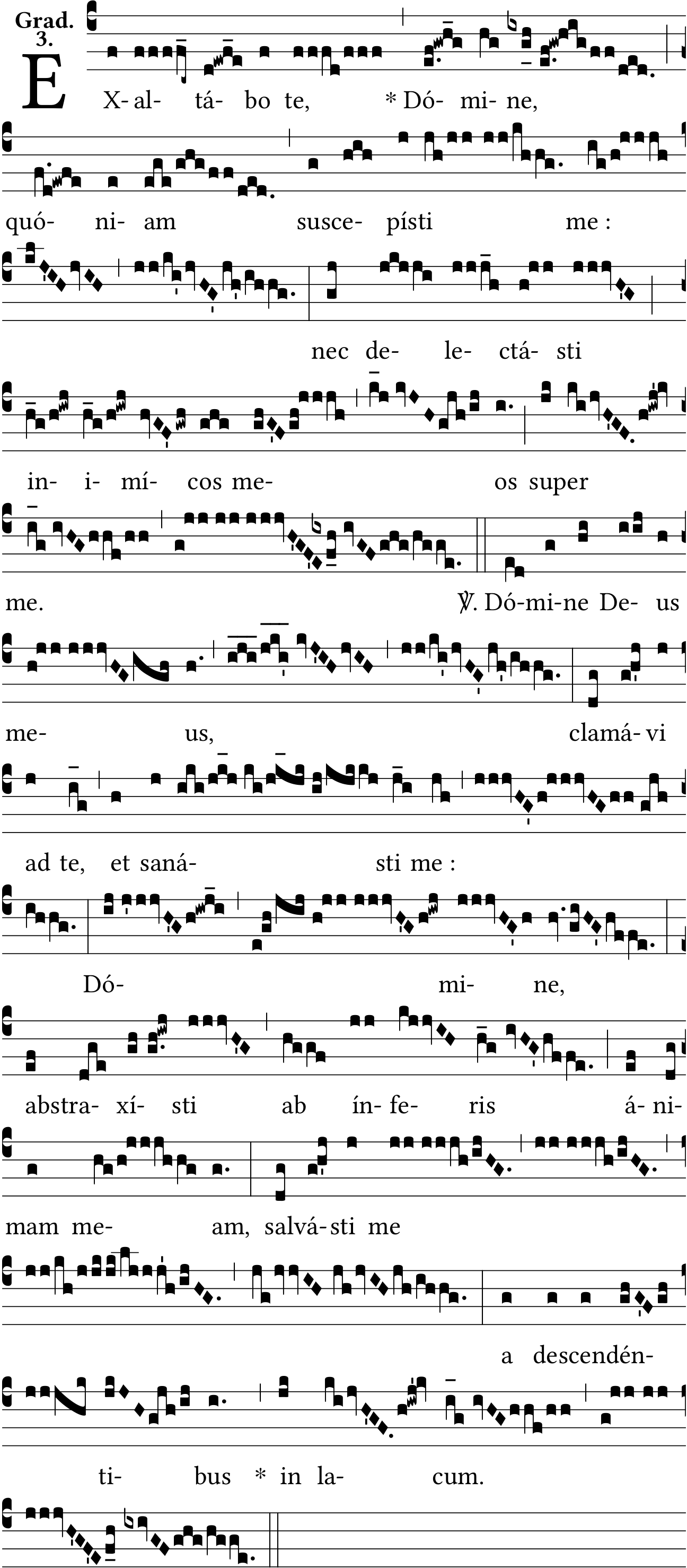 - Oct 28, 2022: unneeded slash spaces, unneeded zero-width spaces, star after bar, joining neumes, removing one note on 'Dómine', medium space on 'me' (Jacques Perriere) ?
