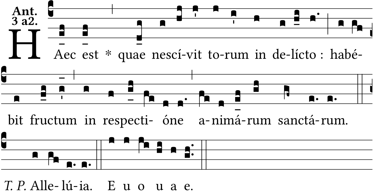 - May 28, 2022: psalm tone 3a2, space :, Allelú{ia}, T. P. after double bar, star after quarter bar, raising and lowering episemas, Liber Antiphonarius page [88] (Jacques Perriere) ?
