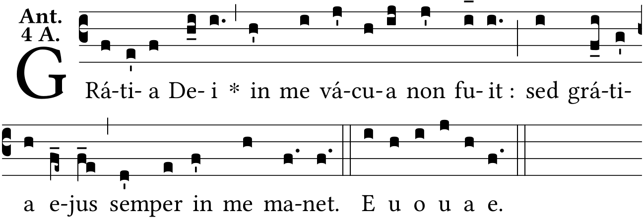 - May 29, 2022: psalm tone 4A, space :, raising one episema, Liber Antiphonarius pages 609 and 756 (Jacques Perriere) ?