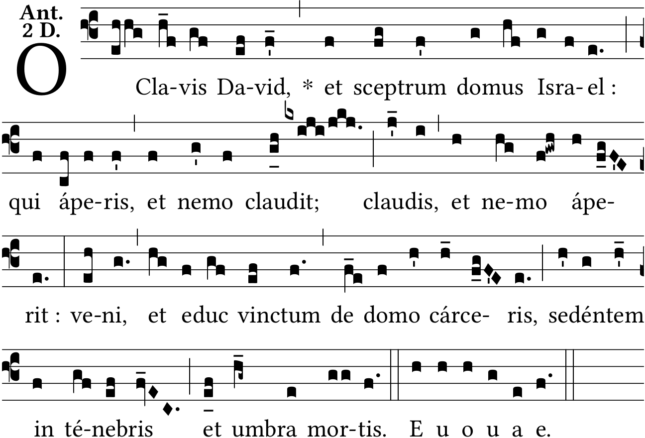 - Feb 19, 2023: Added EUOUAE (J. Perrière has placed it on the other O antiphons again to match the sources more closely.) (DomMocquereau) ?