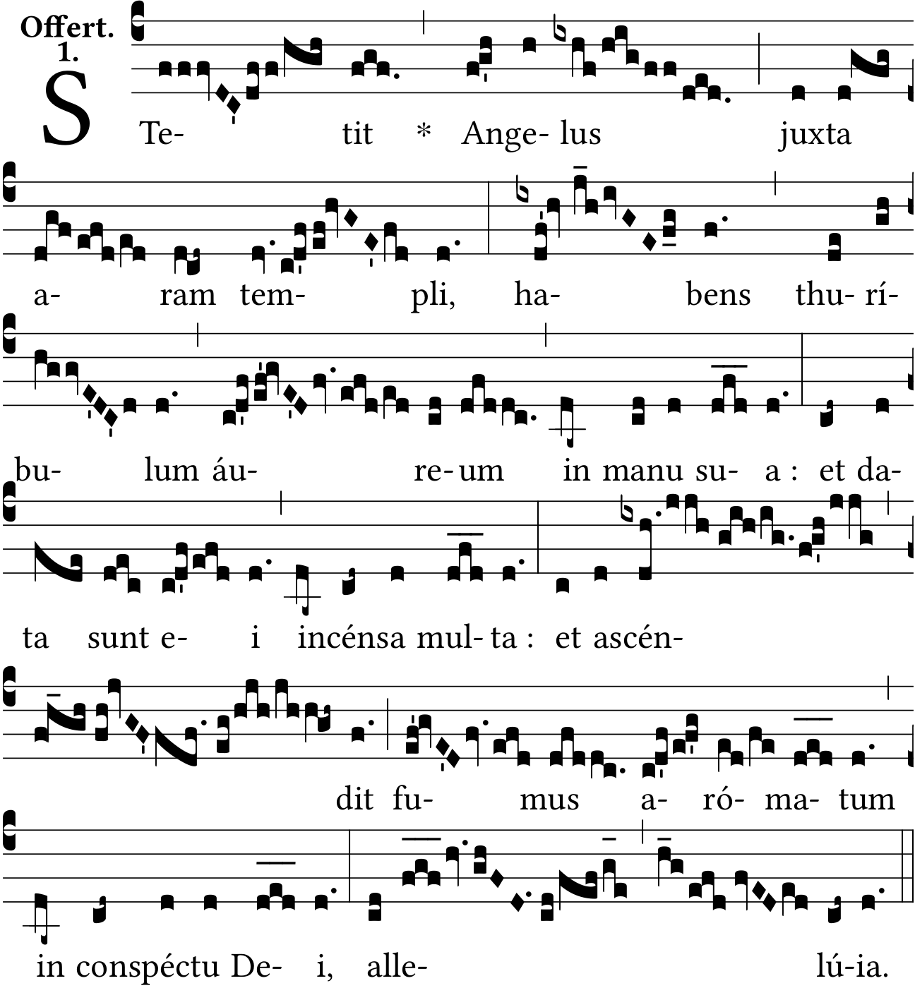 This Offertory is used for the Feast of St. Michael 29th September. It is also used for the Feasts of St. Gabriel (24th March) and St. Raphael (24th October) without the final Alleluia. N.B. The 1924 Graduale and 1910 Liber Usualis mention the omission / have a separate version. The 1950 / 60 ed. Liber Usualis and 1962 Graduale do not mention this omission clearly.