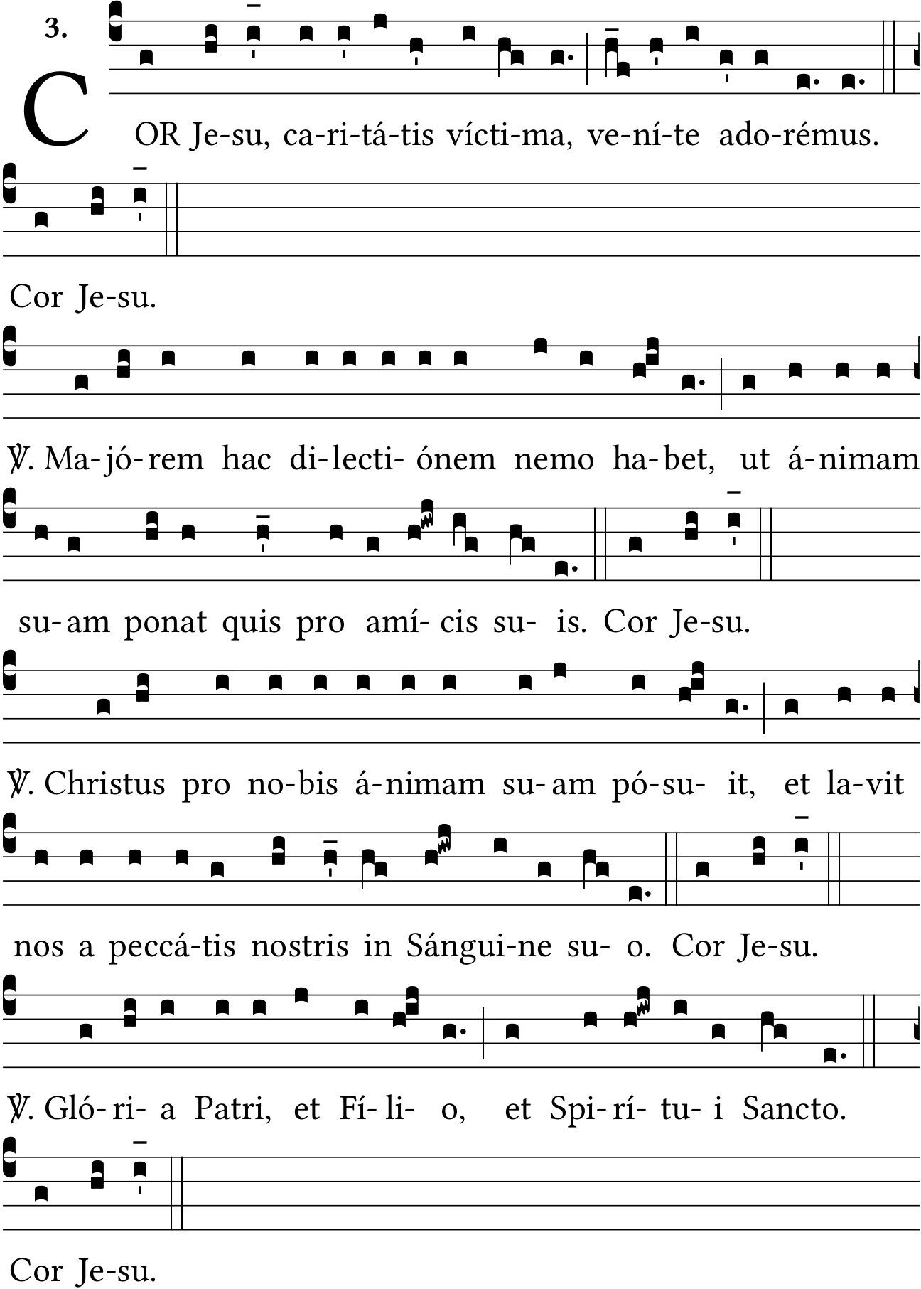 - Aug 17, 2022: COR, ví-ctima, ad-orémus, dile-ctió-nem, Chri-stus, no-stris, San-cto, removing unnecessary accents, V. after double bar, space after bars, lowering notes on 'ánimam', raising episemas, Version Solesmes 1957 (Jacques Perriere) ?