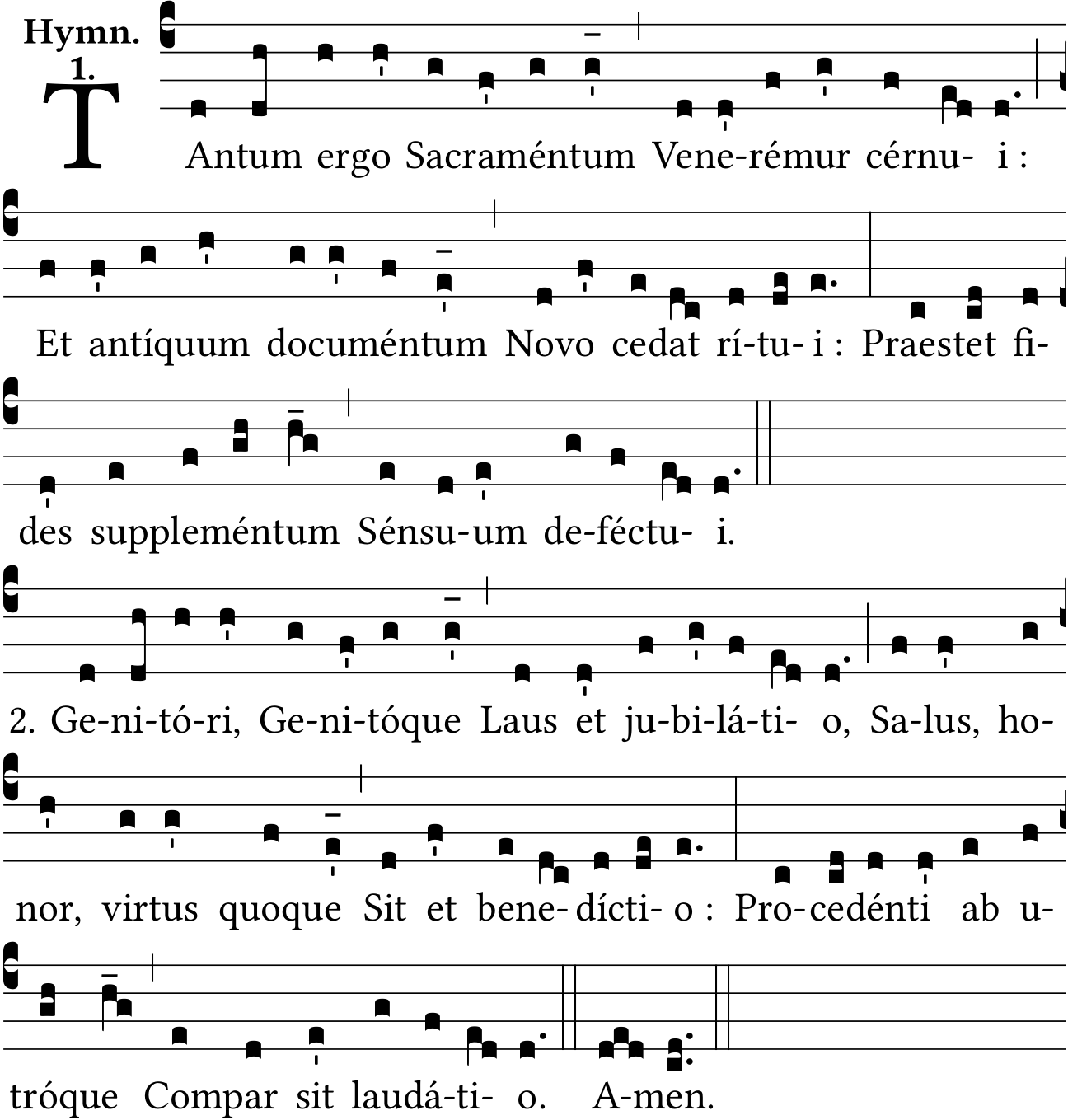 - Aug 17, 2022: Præ-stet, sup-pleméntum, defé-ctui, be-nedí-ctio, removing unnecessary accents, numbers after double bar, space after bars, verse 2 on a new line without custos, ictus before episema, raising episemas, Source Solesmes 1957 (Jacques Perriere) ?