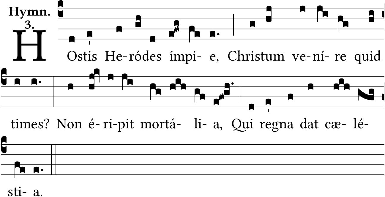 - Dec 17, 2019: Added elision to "unda" in the 4th verse and corrected the remaining neumes of the verse. Added accents to verses 2-5. Capitalized Magi. Added bars to the "Gloria tibi Domine" doxology verse. (rcarey) ?