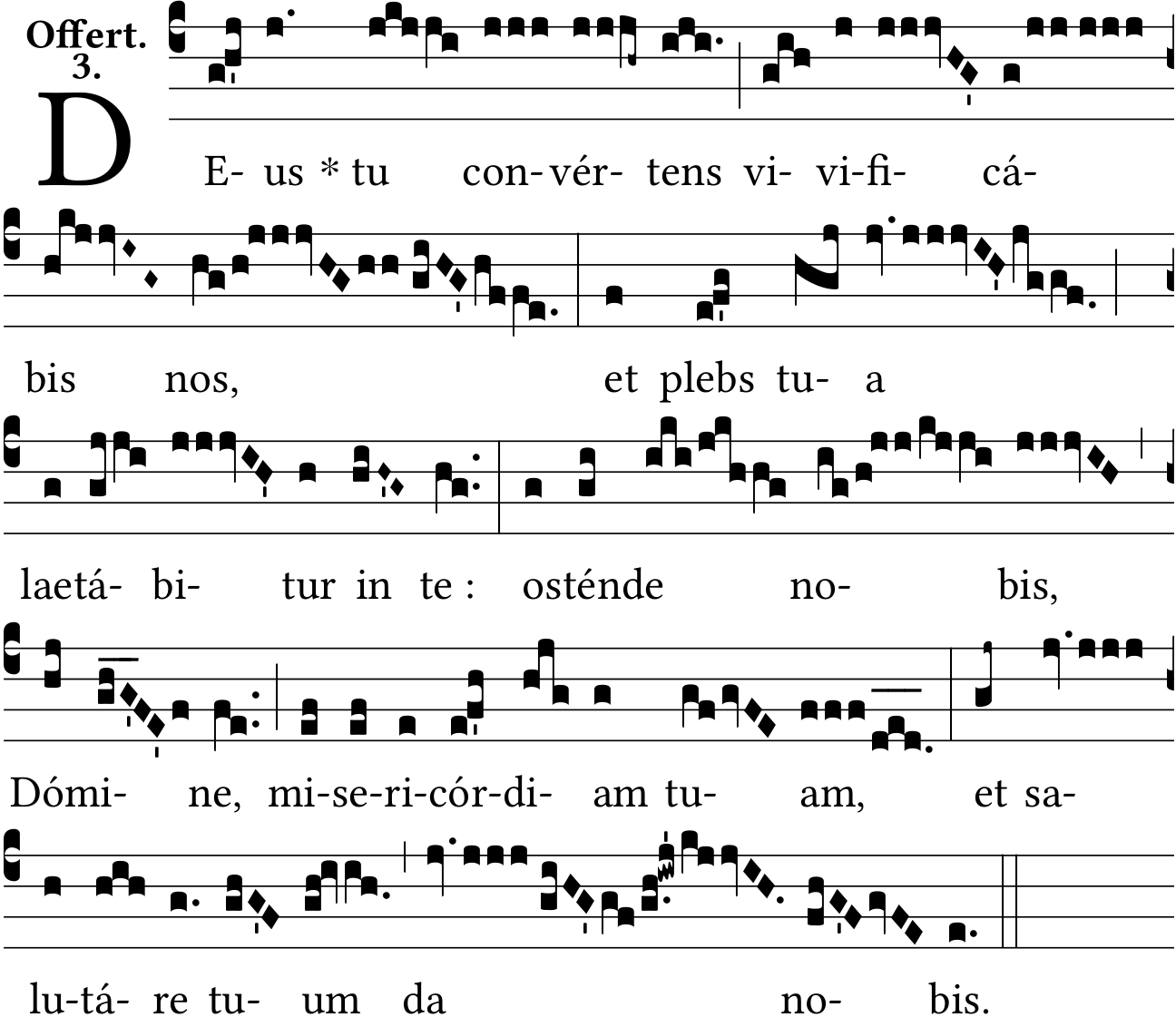 - Jun 15, 2021: o-sténde, ancus on 'vivificábis' and 'in', punctum mora down on 'tua' and 'tuum', removing an episema on 'Dómine' (Jacques Perriere) ?