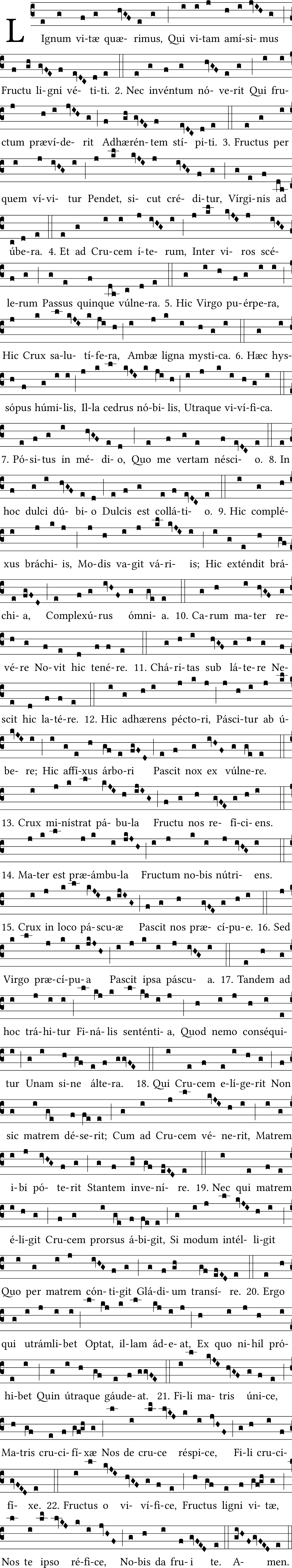 There is a missing neume in the source for verse 21. As 21 and 22 are neumeatically identical, I've used verse 22 to correct verse 21.