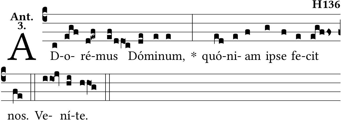 - Feb 24, 2021: Cantus ID, shape of a neume, added incipite of Venite (rleduc) ?