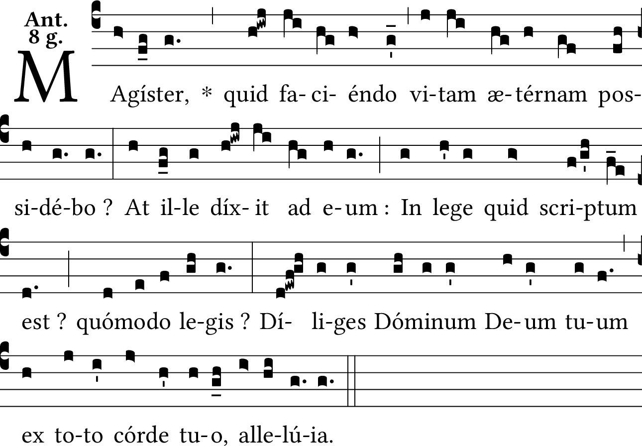 - May 17, 2025: aeTERnam -> liquescent; moved ictus from first to second syllable of “lege”; added episema to “LEgis”; removed ictus from “diliGES”; added Euouae; capitalized ending for mode (Br. Bernard Delgado-Braun OSB) ?